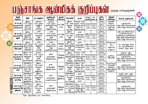 Tamil Raasi Palan Online from tamil Magazine Bala Jothidam for the period May 17-23, 2016 with Panchangam. Weekly Astrological Forecast for all 12 raasi palan online.